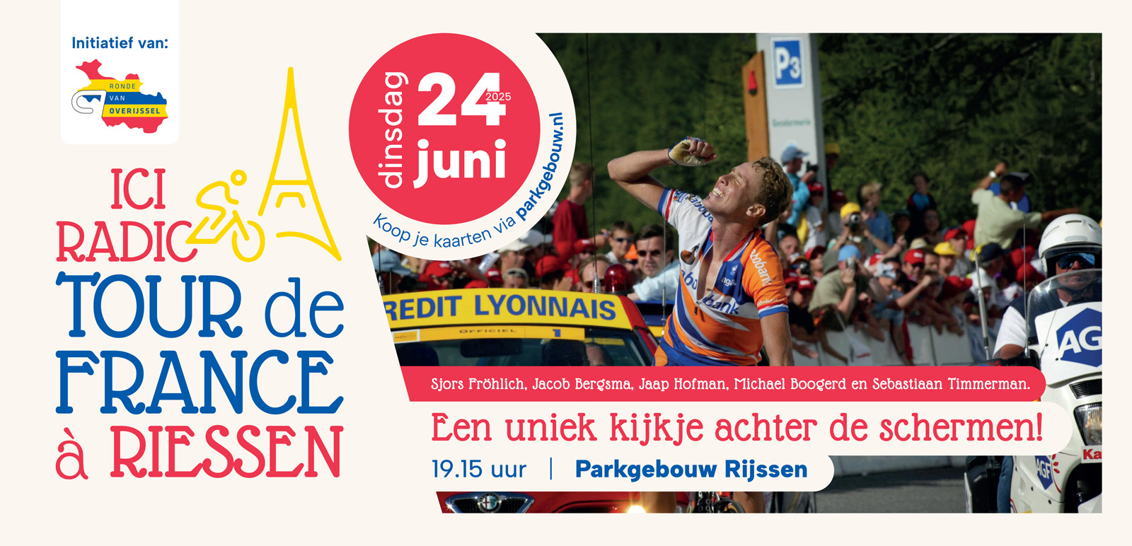 Tussen 20h00 en 21h30 genoot het talrijk opgekomen publiek, bestaande uit sponsors, relaties, vrijwilligers en wielerfans, van heerlijke anekdotes, beelden en jingles. Lachsalvo’s galmden regelmatig door de in wielersfeer ondergedompelde Herman Wessels-zaal van het Parkgebouw Rijssen.